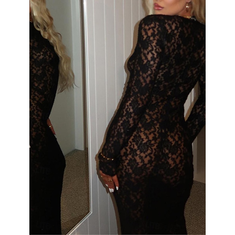 Highlights [Fabric Elegance] : Crafted from high-quality, breathable lace, this maxi dress guarantees comfort and style. The delicate floral lace pattern adds sophistication, while the slightly stretchy fabric ensures a comfortable fit. [Flattering Fit] : This slim-fit dress accentuates the bodyβs natural curves, providing a graceful and elegant silhouette that is perfect for evening events. The sheath dress style offers a sleek and modern look, making it a versatile addition to any wardrobe. [Design Highlights] : Featuring a timeless round neckline and intricate lace patchwork, this dress exudes elegance and style. The sheer lace overlay adds depth and a touch of allure, while the long sleeves lend an air of sophistication. [Occasions Versatility] : Ideal for date nights, vacations, or trendy streetwear, this maxi dress is perfect for any holiday celebration or special occasion. Pair it with minimalistic accessories to enhance its captivating allure, making it a standout choice for any event. [Size Range] : Available in sizes S, M, and L, this dress is meticulously designed to fit a variety of body shapes, ensuring a flattering and comfortable fit for many. Perfect for everyday use. supreme materials and excellent craftsmanship ensure long-lasting durability.