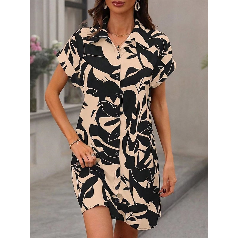 More information about Women's Floral Leaf Shirt Collar Mini Dress Short Sleeve Summer Spring