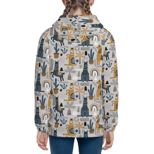 Llama and Cactus1 Kid Hoodies Boys Zip Up Sweatshirts Girls Pullover with Pocket