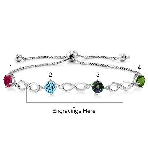 Gem Stone King 925 Sterling Silver Customized and Personalized Engraved Custom 4-Stone Gemstone Birthstone Keren Hanan Adjustable Infinity Tennis Bracelet For Women