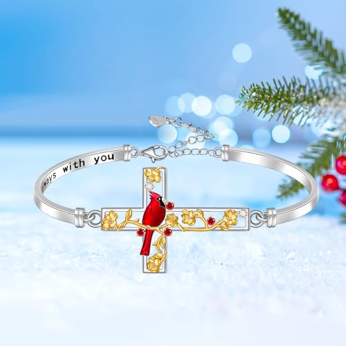 Cardinal Bracelet for Women Sterling Silver Cross Bracelets Christmas Red Cardinal Gifts for Loss of Loved One Memorial Sympathy Jewelry