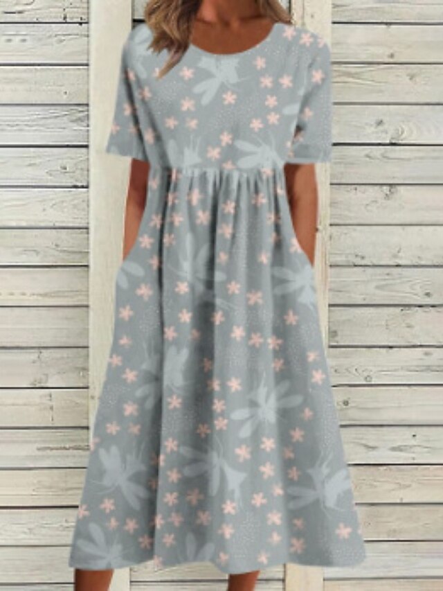 This Women's Midi Dress Casual Dress Floral Dress Classic up-to-date Vacation Daily Going out Regular Fit Flower Short Sleeve Crew Neck Purple Gray Fall combines elegant design with practical functionality. Every detail has been carefully considered to ensure you get the best possible experience. The first-class construction means this product will serve you well for years to come.