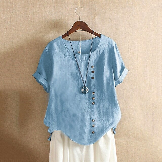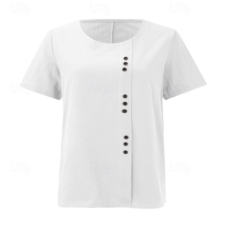 This Women's Texture Blouse T Shirt Plain Fashion contemporary Short Sleeve Crew Neck Regular Tops Daily Buttons White Army Green Light Blue Summer combines elegant design with practical functionality. Every detail has been carefully considered to ensure you get the best possible experience. The premium construction means this product will serve you well for years to come.