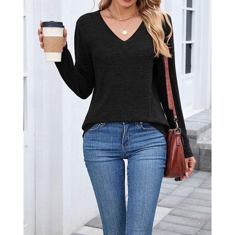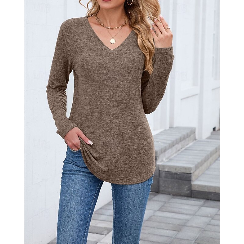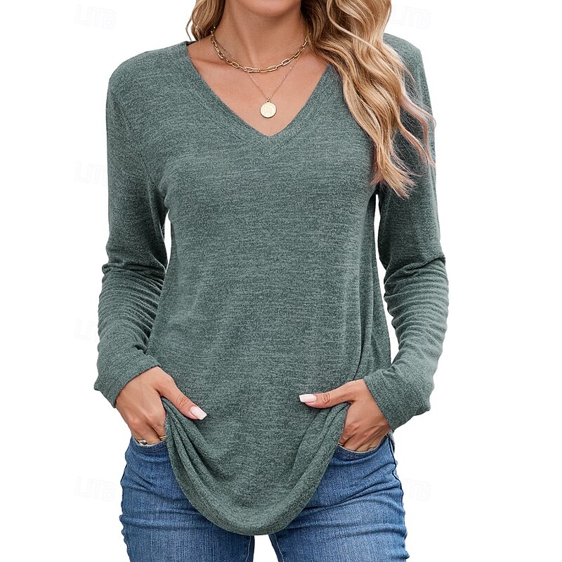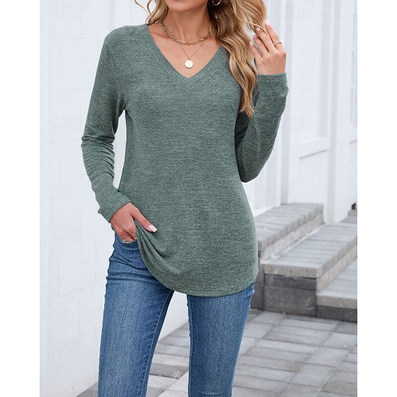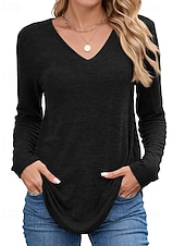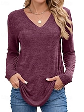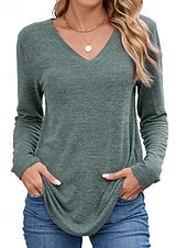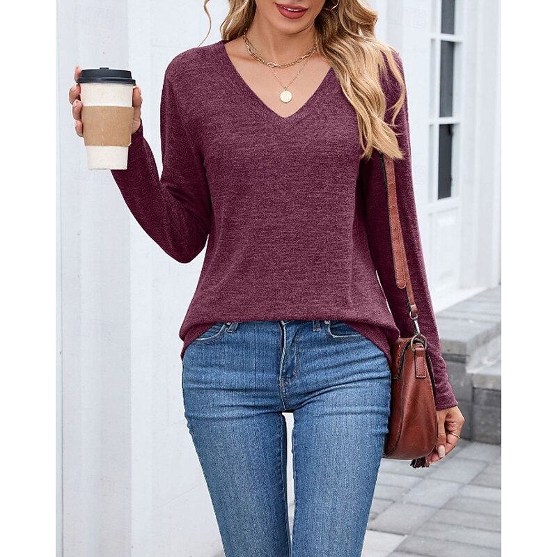 More information about Women's Texture Blouse T Shirt Plain Casual Long Sleeve V Neck Regular Tops Daily Going out Black Wine Army Green Blue Brown Fall