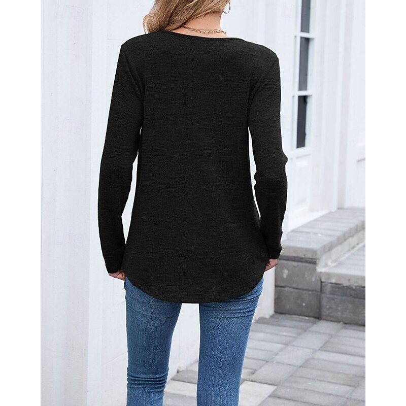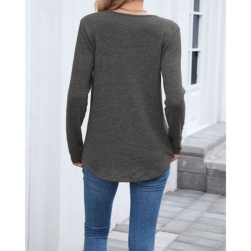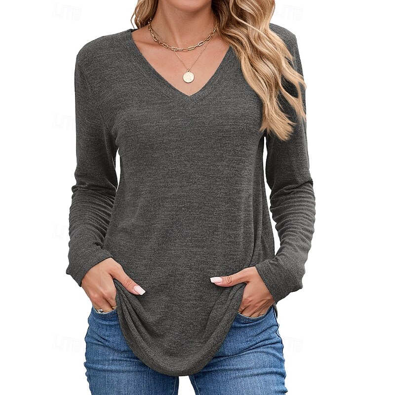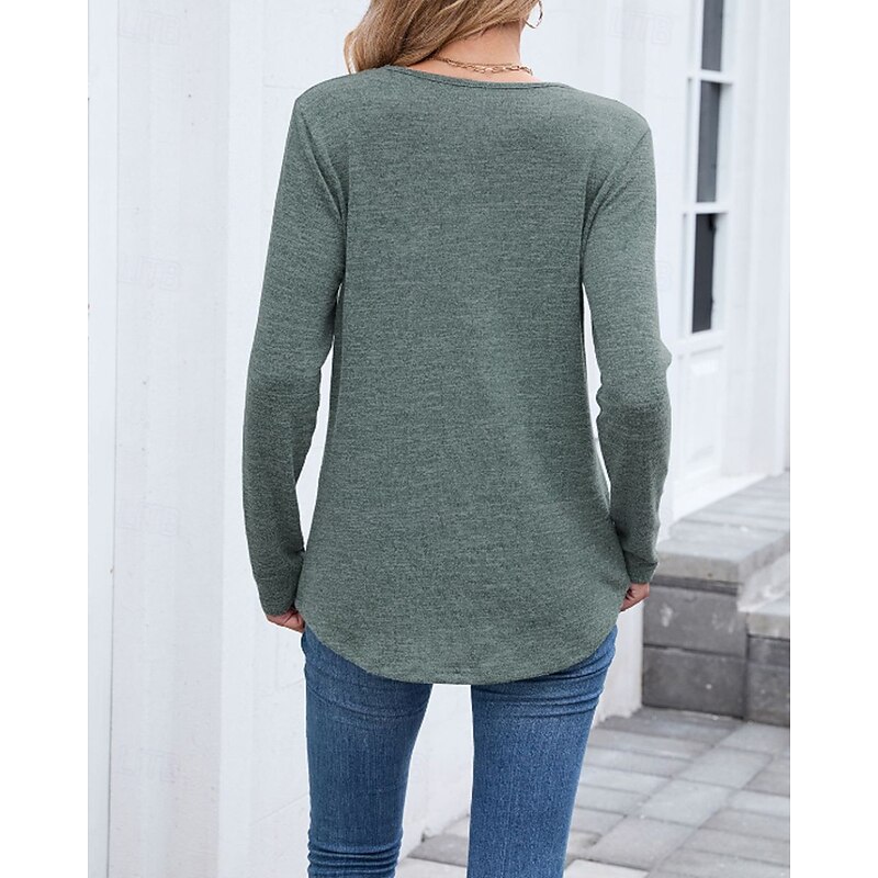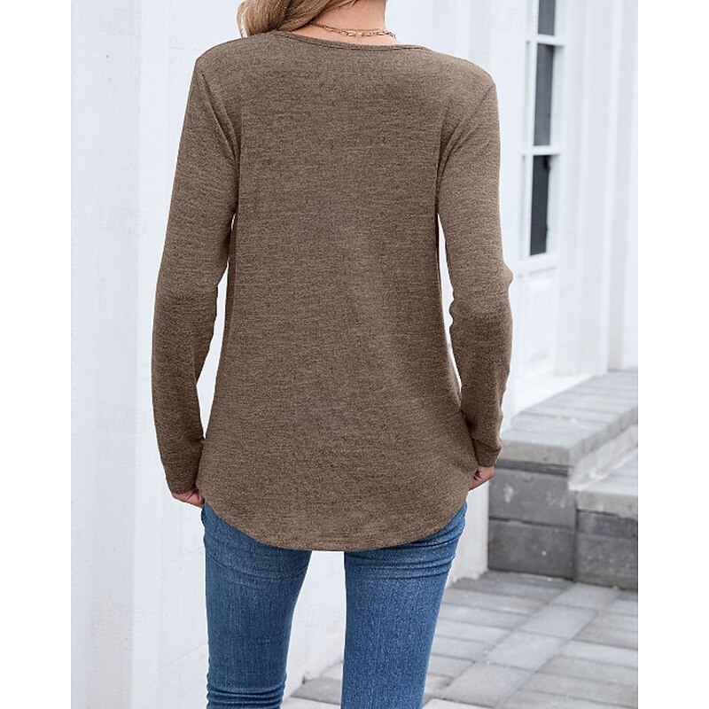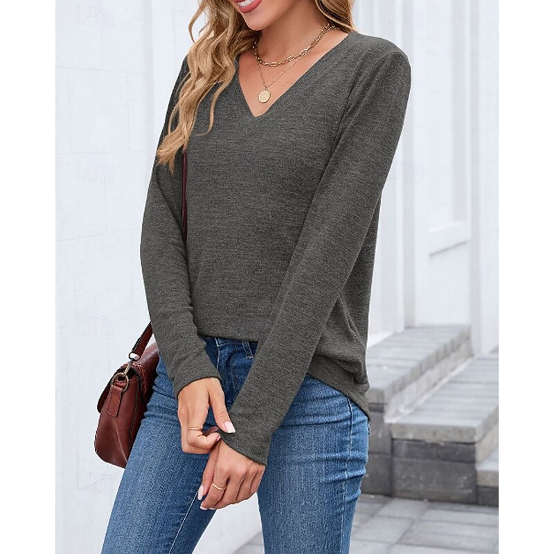 More information about Women's Texture Blouse T Shirt Plain Casual Long Sleeve V Neck Regular Tops Daily Going out Black Wine Army Green Blue Brown Fall