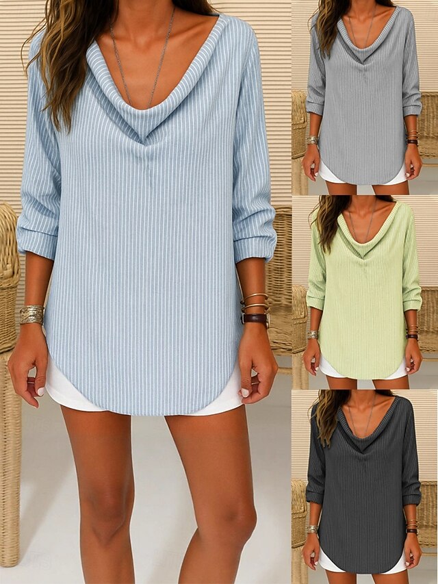 This Women's Blouse Striped Daily sleek Long Sleeve Cowl Neck Regular Tops Daily Holiday Pocket Buttons Print Black Yellow Gray Light Blue Summer Spring Fall combines elegant design with practical functionality. Every detail has been carefully considered to ensure you get the best possible experience. The first-class construction means this product will serve you well for years to come.
