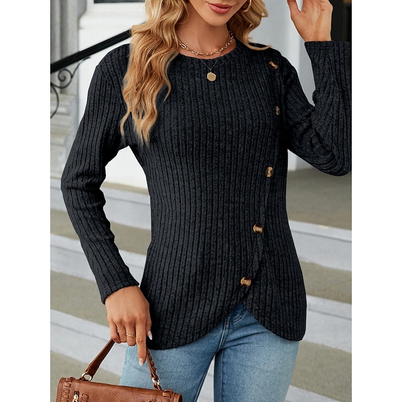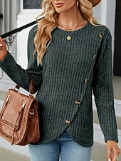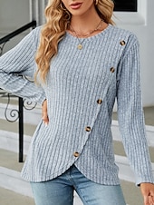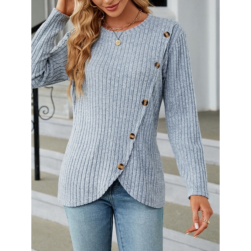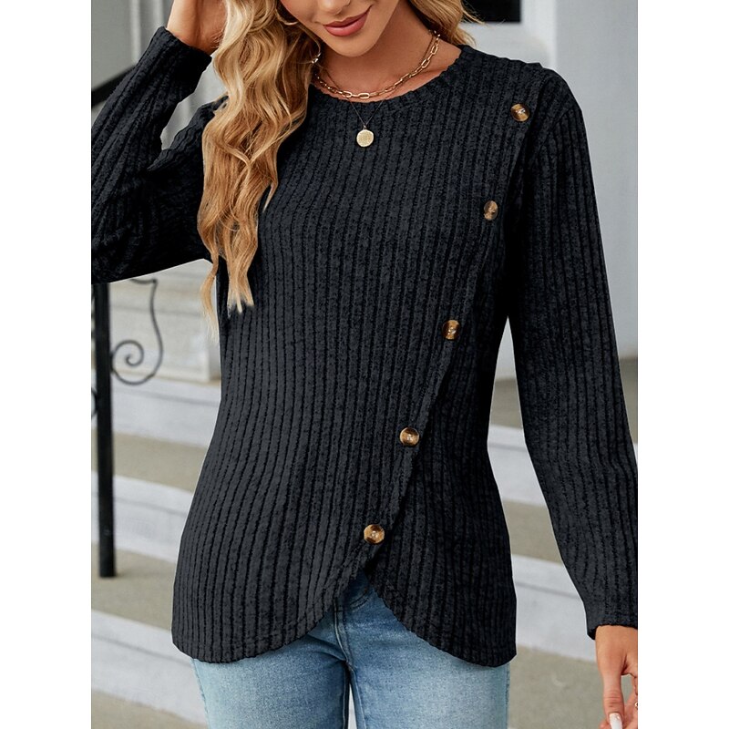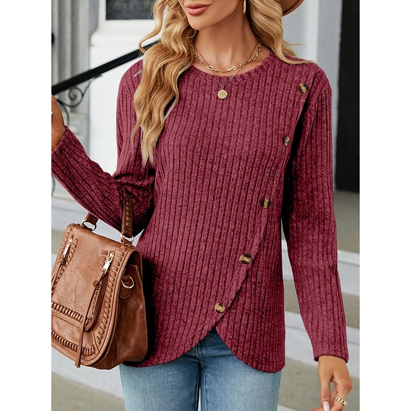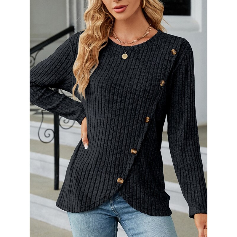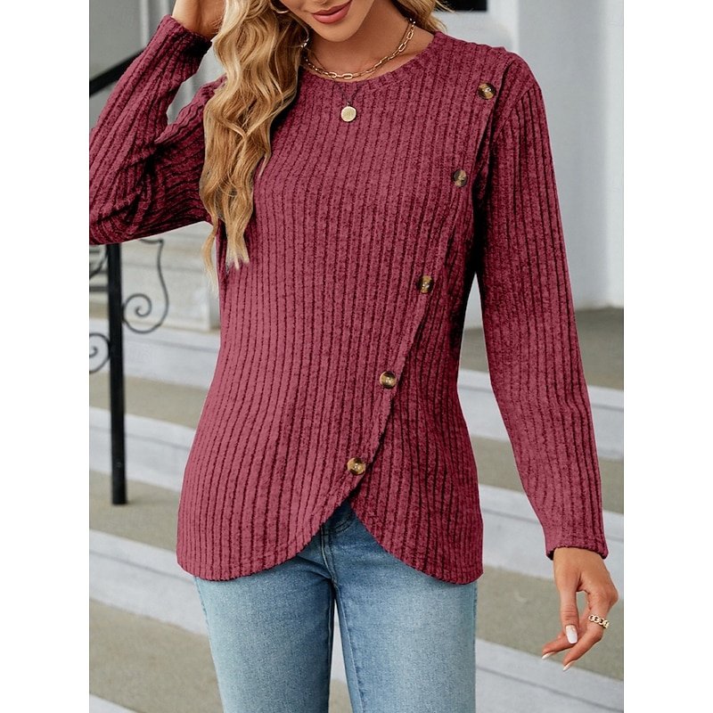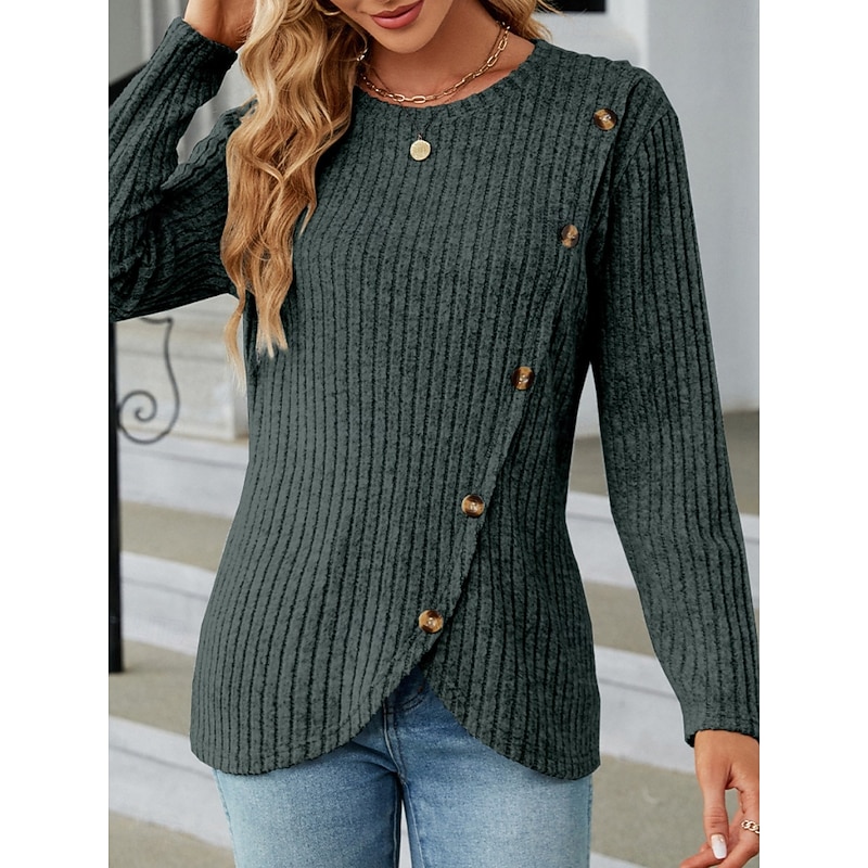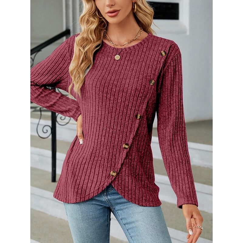 This Women's Blouse Solid Color sleek Casual Long Sleeve Crew Neck Regular Tops Daily Buttons Black Army Green Red Blue Gray Spring Fall Winter combines elegant design with practical functionality. Every detail has been carefully considered to ensure you get the best possible experience. The first-class construction means this product will serve you well for years to come.