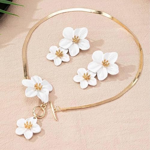 Gold Flower Earrings Necklace Set Floral Statement Earrings for Women Flower Wedding Jewelry Sets for Brides Wedding Guest Dresses for Women 2025