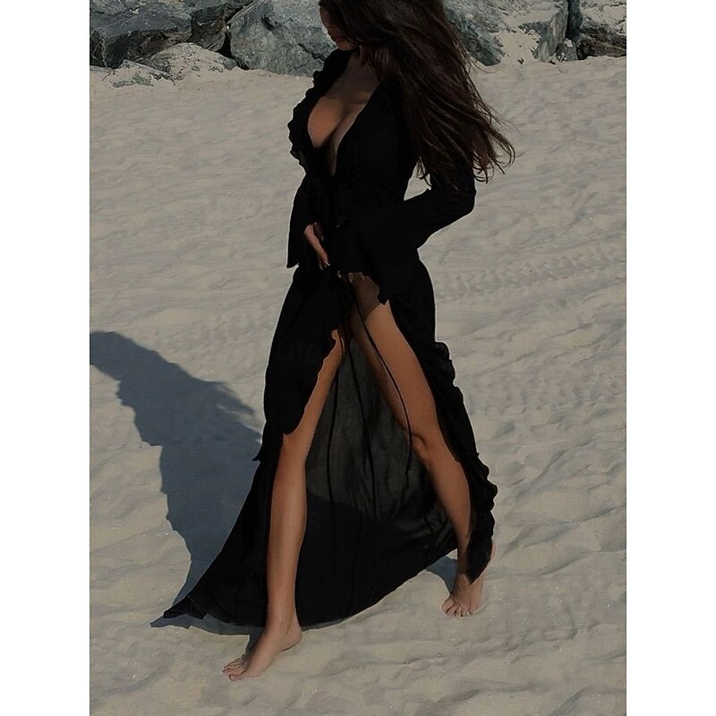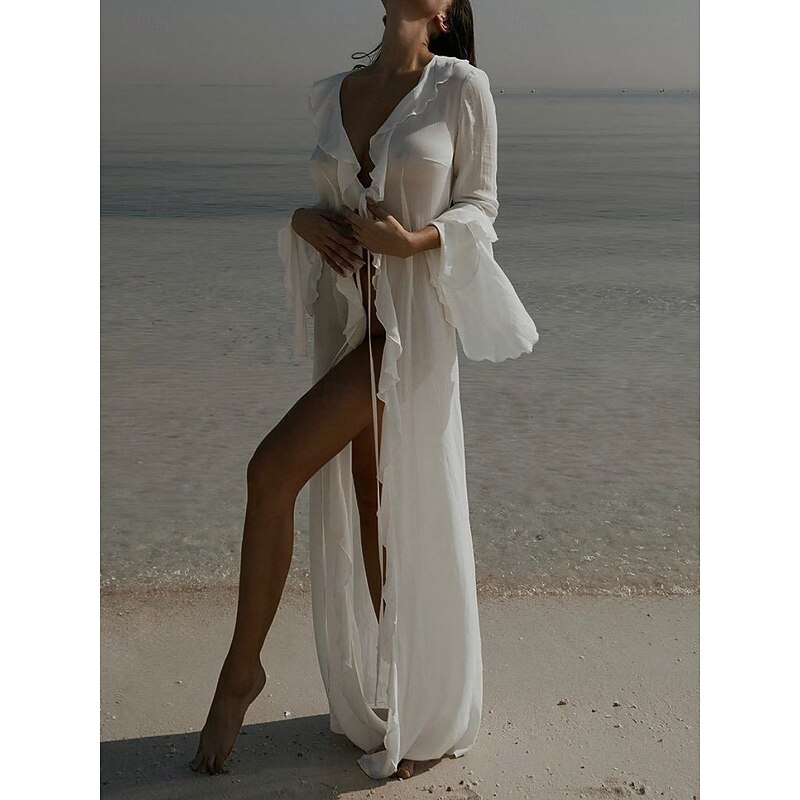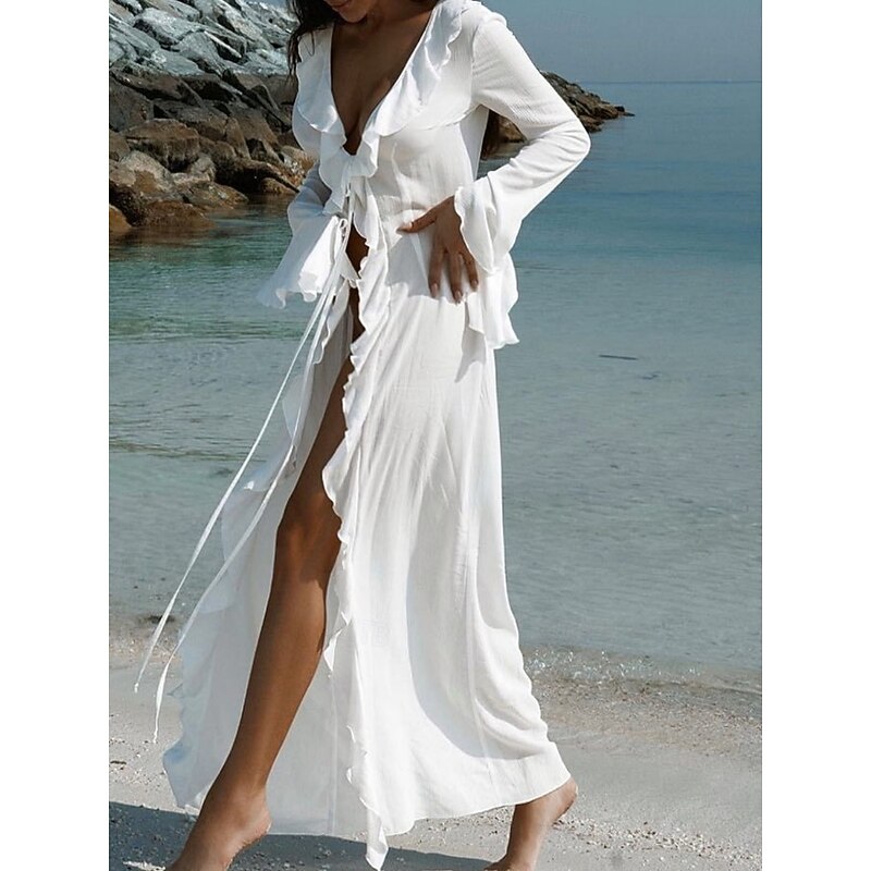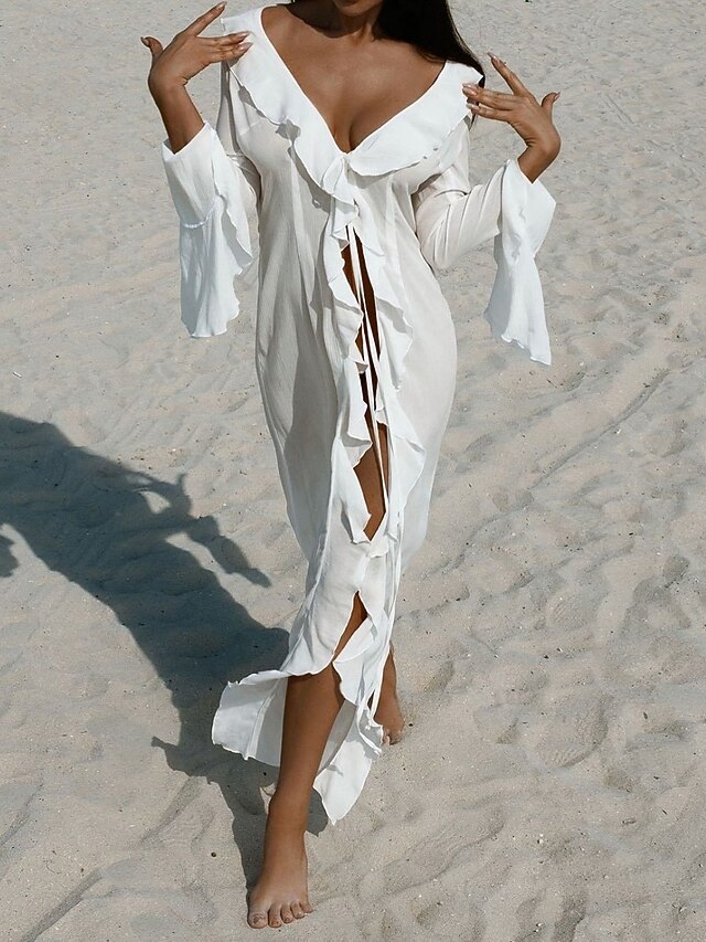 Why Choose Women's Swimsuits Cover Up Swim Dress Swimsuit Ruffle Vacation Beach Wear Solid Color V Neck Long Sleeve Bathing Suits?
