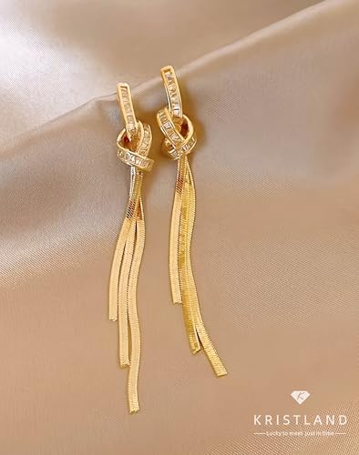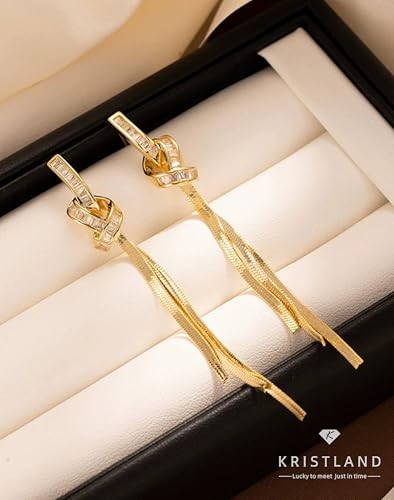 popular ! 18K Gold Plated Snake Chain Tassel Earrings for Women Fringe Knot Cubic Zircon with S925 Silver Stud Earrings Long Tassel Drop Boho Jewelry