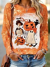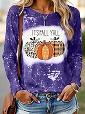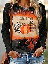More information about Halloween Women's T shirt Pumpkin Graphic Vintage Fashion Casual Long Sleeve Crew Neck Regular Tops Daily Weekend Print Black Yellow Purple Orange Fall Winter