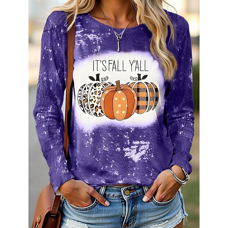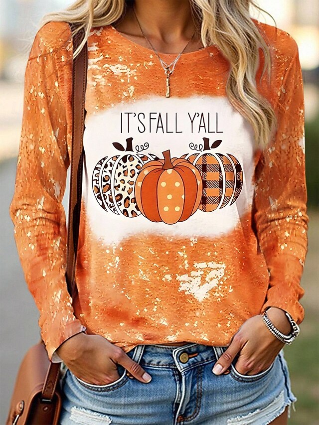 popular ! Halloween Women's T shirt Pumpkin Graphic Vintage Fashion Casual Long Sleeve Crew Neck Regular Tops Daily Weekend Print Black Yellow Purple Orange Fall Winter