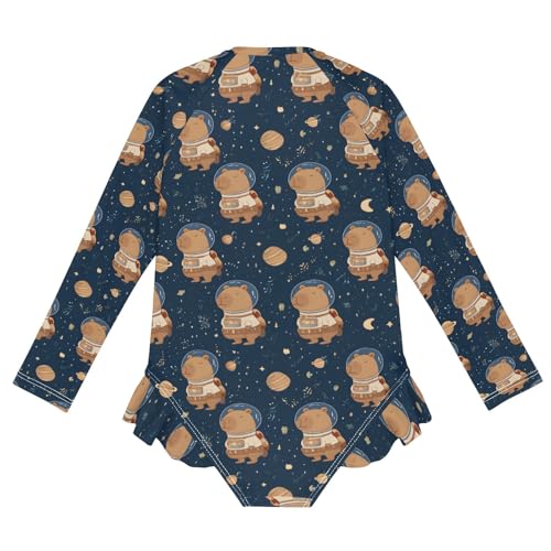 popular ! ALAZA Toddler Swimsuit Girl Bathing Suit Swimwear Rash Guard Astronaut Capybara Long Sleeve 3T