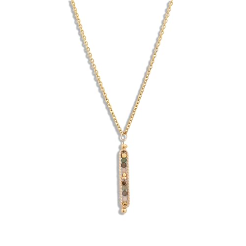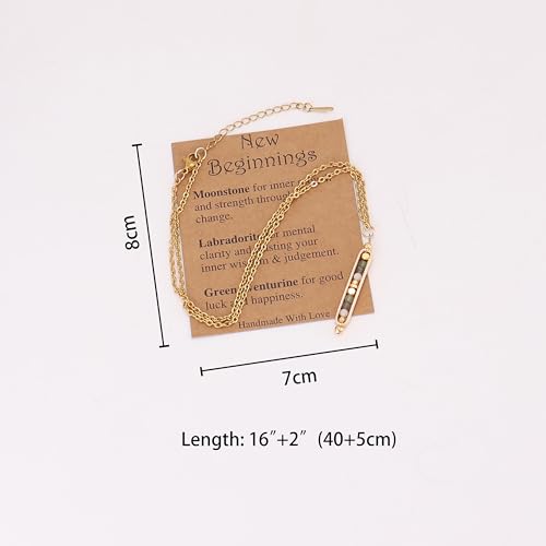 Material: CrystalMetal type: Stainless SteelClasp type: LobsterMetal weight: 10 gGem type: No GemstoneThree Powerful Healing Stones: This handcrafted pendant showcases Moonstone for emotional balance, Labradorite for spiritual strength, and Green Aventurine for luck. A calming and empowering trio designed to support inner peace, intuition, and personal growth.Handcrafted With Intention: Made with genuine gemstone beads, a polished copper bar, and a sturdy stainless steel chain, this necklace combines natural energy with artisan care for beauty thatβs more than skin deep.Designed for Everyday Comfort: Weighing just 10g, with an adjustable 45cm (17.7) chain and 5cm (2) extender with 3mm beads, it offers a perfect fit for any neckline and daily routine.Spiritual Wellness Meets Style: Ideal for yoga lovers, empaths, or anyone drawn to healing crystals. The stones carry Reiki-aligned energy that promotes emotional clarity, intuition, and serenity while looking effortlessly elegant.A Meaningful Gift for Her: A thoughtful and symbolic gift for birthdays, holidays, or any special occasion. Perfect for women who value wellness, spirituality, and intentional living. Perfect for everyday use. supreme materials and excellent craftsmanship ensure long-lasting durability.