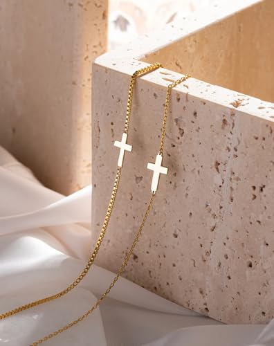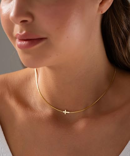 popular ! Cross Necklace for Women 14K Gold Silver Plated Dainty Small Cross Pendant Necklace Charm Choker Trendy Cute Cross Charm Chain Necklaces Faith Religion Jewelry Minimalist Gifts
