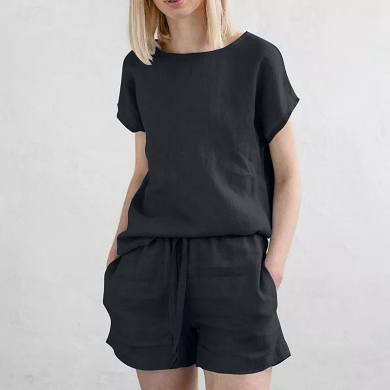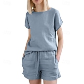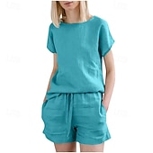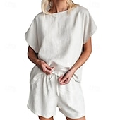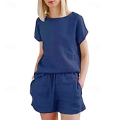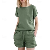 $32.99 - Women's Fashion Streetwear Two Piece Sets T Shirt Shorts Sets Short Sleeve Round Neck Solid Color Drawstring Daily Wear Date Black White Army Green Summer Regular Fit 2025. Shop for cheap Sets online? Buy at lightinthebox.com on sale today!