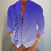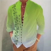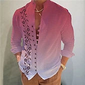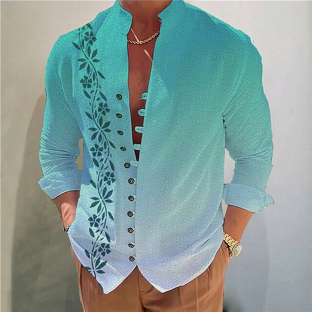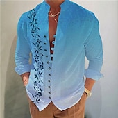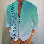 Men's Gradient Leaves Shirt Button Up Shirt Long Sleeve Fashion Streetwear Designer Outdoor Casual Daily Summer Spring Fall Stand Collar Print Blue-Green Yellow Pink Blue Purple
