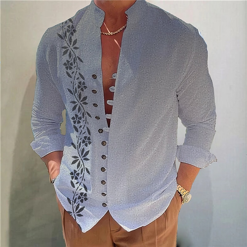 Highlights [Fabric:] Crafted from a lightweight and breathable polyester fabric, this shirt ensures comfort and easy movement all day long. The high-quality material is easy to care for, offering both machine and hand wash possibilities. [Fit Type:] Designed in a regular fit, this shirt provides a balanced silhouette that complements a variety of body types. The fit ensures that it's neither too tight nor too loose, offering just the right amount of room for layering or wearing on its own. [Design Highlights:] The standout feature of this men's shirt is its unique gradient design with leaf patterns, beautifully transitioning across the fabric. The shirt also boasts a sophisticated stand collar and a button-down front, enhancing its modern appeal. Rolled-up long sleeves add versatility to the overall style, making it suitable for various fashion preferences. [Occasions:] Perfectly suited for daily wear, this shirt is ideal for casual or outdoor occasions. Whether you're heading out for a day in the city or enjoying a relaxed evening with friends, this shirt adds a touch of designer streetwear to any ensemble, making it a versatile addition to your wardrobe. [Size Range:] Available in a wide range of sizes from S to 3XL, this shirt offers options to fit different body shapes and sizes, ensuring a comfortable and tailor-like fit for adults of various age groups. Perfect for everyday use. supreme materials and excellent craftsmanship ensure long-lasting durability.