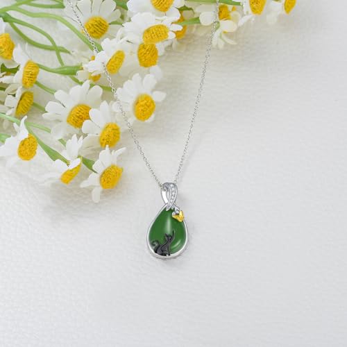 Green Jade Necklace Sterling Silver Teardrop Hummingbird/Dragonfly/Butterfly/Bee/Cat/Cardinal/Owl/Fox/Sloth Natural Jade Jewelry Birthday Christmas Gifts Women Mom Wife