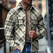 More information about Men's Plaid Geometric Pattern Cowboy Shirt Jacket Overshirt Long Sleeve Vintage Casual Daily Wear Going out Fall & Winter Collared Shirts Buttons 3D Print 2 Pockets Dark Green