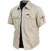 More information about Men's Cross Work Shirt Western Shirt Cargo Shirt Short Sleeve Casual Tactical Sports & Outdoor Going out Summer Spring Turndown Print Army Green Khaki Dark Blue Beige
