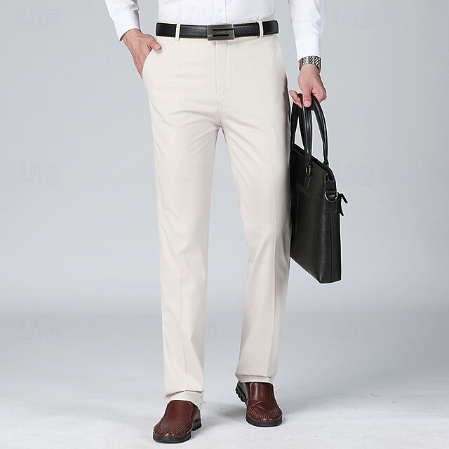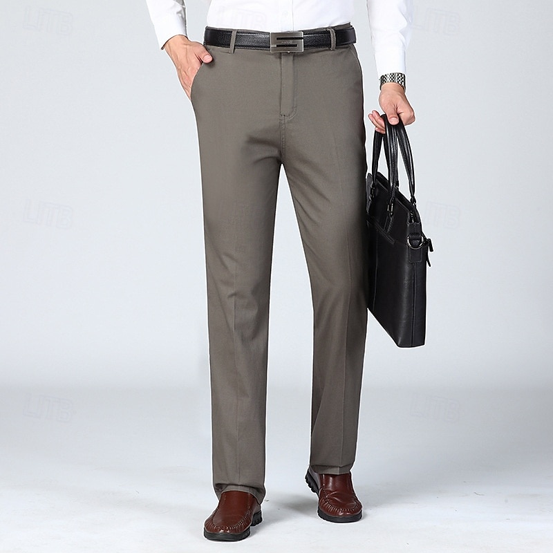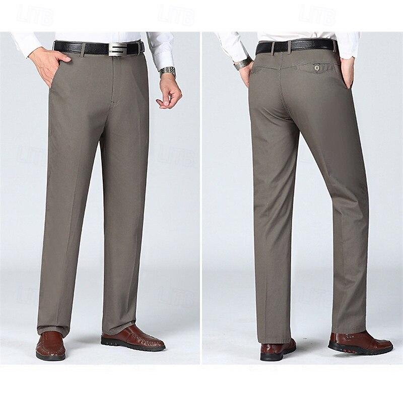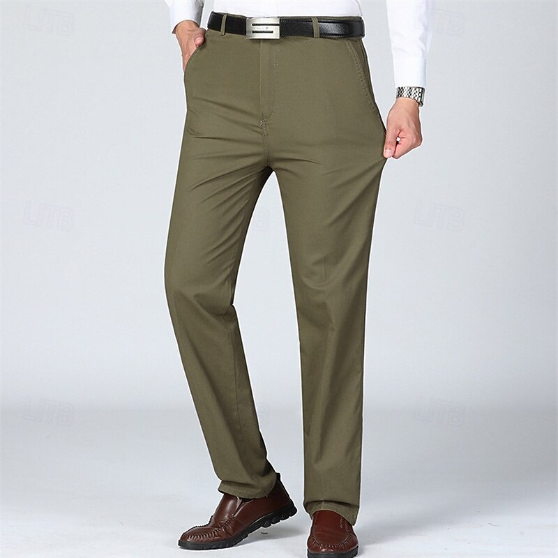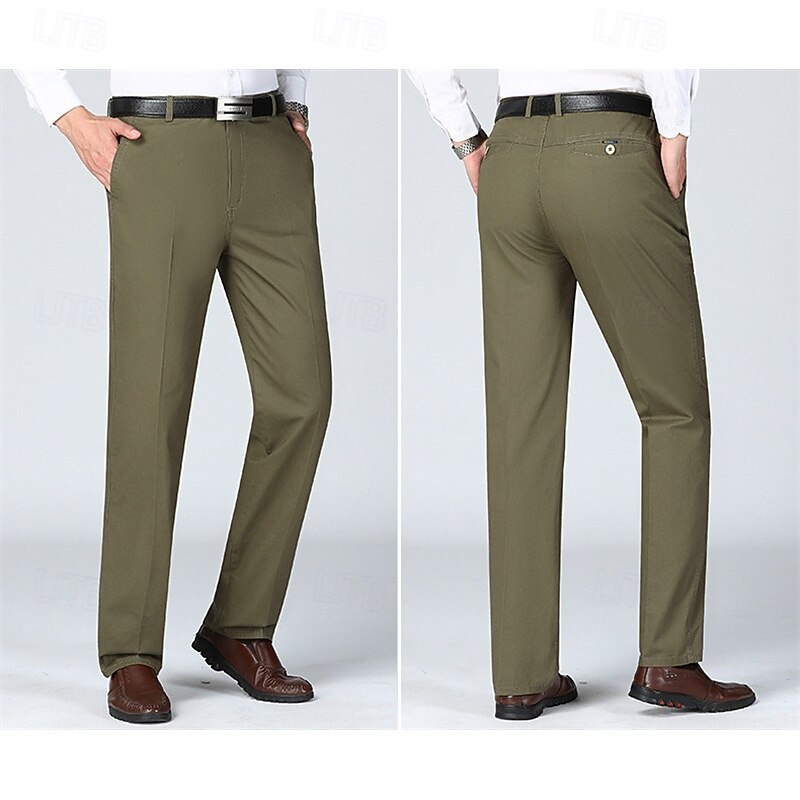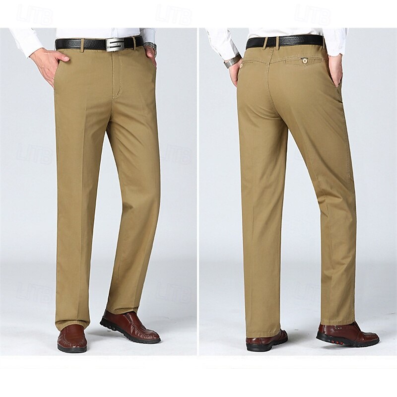 popular ! Men's Dress Pants Trousers Chinos Buttons Pocket Plain Comfort Formal Party Work Fashion vintage Style Dark Khaki Light Khaki Micro-elastic