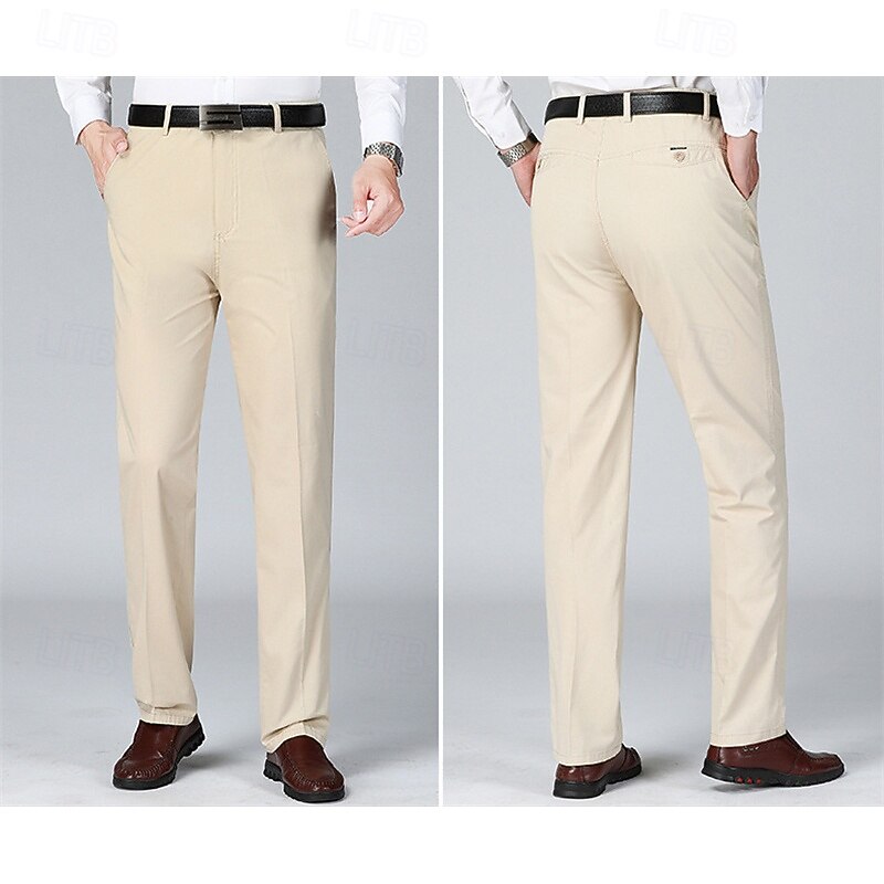 More information about Men's Dress Pants Trousers Chinos Buttons Pocket Plain Comfort Formal Party Work Fashion traditional Style Dark Khaki Light Khaki Micro-elastic