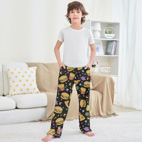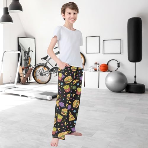 Boy's Pants Pizza Hamburger Jogger Pants Elastic Waist Long Bottoms Trousers with Pockets 6-14 Years