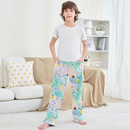 popular ! Boy's Pants Musical Note Hand Draw Jogger Pants Elastic Waist Long Bottoms Trousers with Pockets 6-14 Years
