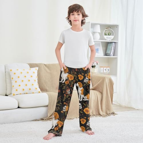 popular ! ZZXXB Beagle Skull Flower Boys Long Pants velvety Trousers Elastic Waist Kids Lounge Bottoms with Pockets S-XL