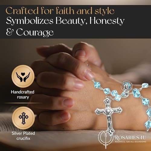 • Crafted using 8mm Aquamarine Blue top-grade Austrian Crystals. These beads epitomize elegance and reverence, offering a tangible connection to spirituality with their exquisite design and radiant hues.