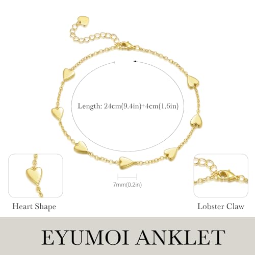 Gold Anklets for Women 14K Gold Ankle Bracelets for Women Anklet for Womens Small Heart-Shaped Pendants Ankle Bracelet for Womens Heart Anklet With Adjustable Size 9.4'' to 11''