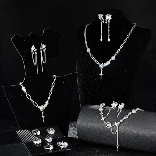 popular ! Tondiamo 12 Pcs Y2k Necklace Jewelry Set Y2k Star Moonstone Accessories Irregular Pendant Earrings Dangling Silver Rings Aesthetic Crystal Jewelry Gifts Indie Punk Rings Adjustable for Women