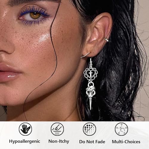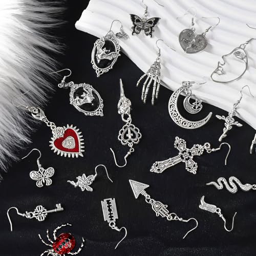 Material: MetalMetal type: AlloyGem type: AlloyGothic Earrings Set: This set includes 20 pairs of gothic earrings for women, featuring a variety of designs such as skulls, crosses, and bats. It offers a wide range of emo earrings, grunge earrings, and punk earrings to suit every taste and outfit.Versatile and trendy: Perfect for a range of occasions, these 20 pairs of gothic earrings can be worn at gothic theme parties, concerts, cosplay events, or simply as a bold fashion accessory in your daily life. Ideal for women who love to make a statement with their jewelry.Premium Material : Crafted from supreme alloy, these goth earrings are durable and resilient, ensuring they stay in great shape even after frequent use. They resist tarnishing and fading, making them a reliable choice for your gothic jewelry collection.Perfect Gift : Whether you're treating yourself or looking for a thoughtful gift, this set of goth earrings for women is an excellent choice. It provides ample options for mixing and matching, ensuring the recipient can always create a unique and striking look.Alt Earrings Style: Stand out from the crowd with these striking gothic earrings. Each pair showcases a bold and distinctive goth jewelry style, adding a touch of mystery and darkness to any ensemble. Perfect for those who embrace their alternative side. Perfect for everyday use. High quality materials and excellent craftsmanship ensure long-lasting durability.