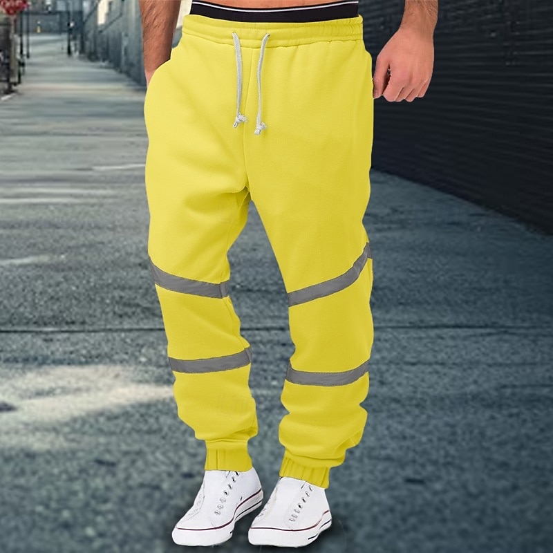 Men's Fleece Pants Sweatpants Joggers Trousers Casual Pants Drawstring Elastic Waist Reflective Strip Plain Comfort comfortable Full Length Sports Outdoor Daily Nightclub Fashion Streetwear Black Yellow