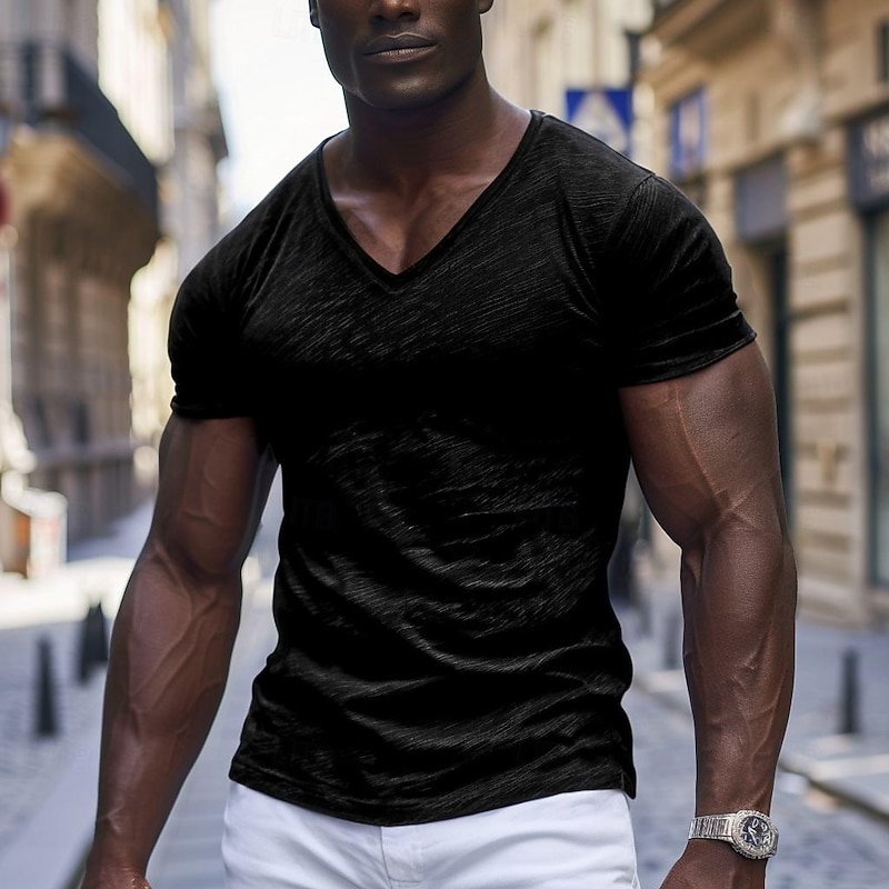 Highlights 1. Short sleeve design for a comfortable and fashionable look 2. Specifically designed for men 3. Basic yet fashionable style 4. Perfect for casual wear 5. Slim fit for a up-to-date silhouette 6. Stylish V-neck neckline for added detail