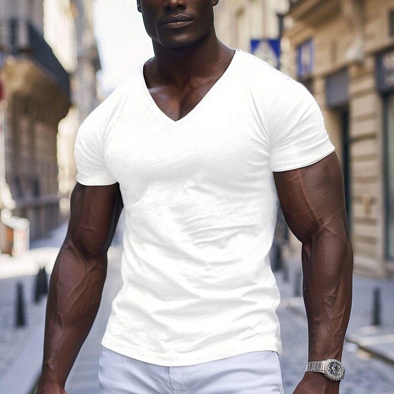 popular ! Men's T Shirt Moisture Wicking Shirts Bamboo T-shirt Short Sleeve V Neck Summer Plain Sports Basic Casual vintage Style Casual Light Blue Black White Top Tee for Men