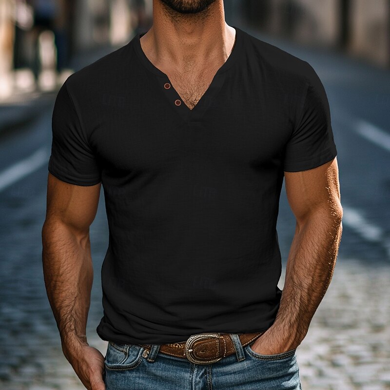 This Men's Henley Shirt Tee Top Short Sleeves Plain Fashion Designer Basic Buttons V Neck Henley Vacation Street Casual Summer Black White Navy Blue Henley T-Shirt combines elegant design with practical functionality. Every detail has been carefully considered to ensure you get the leading possible experience. The finest construction means this product will serve you well for years to come.