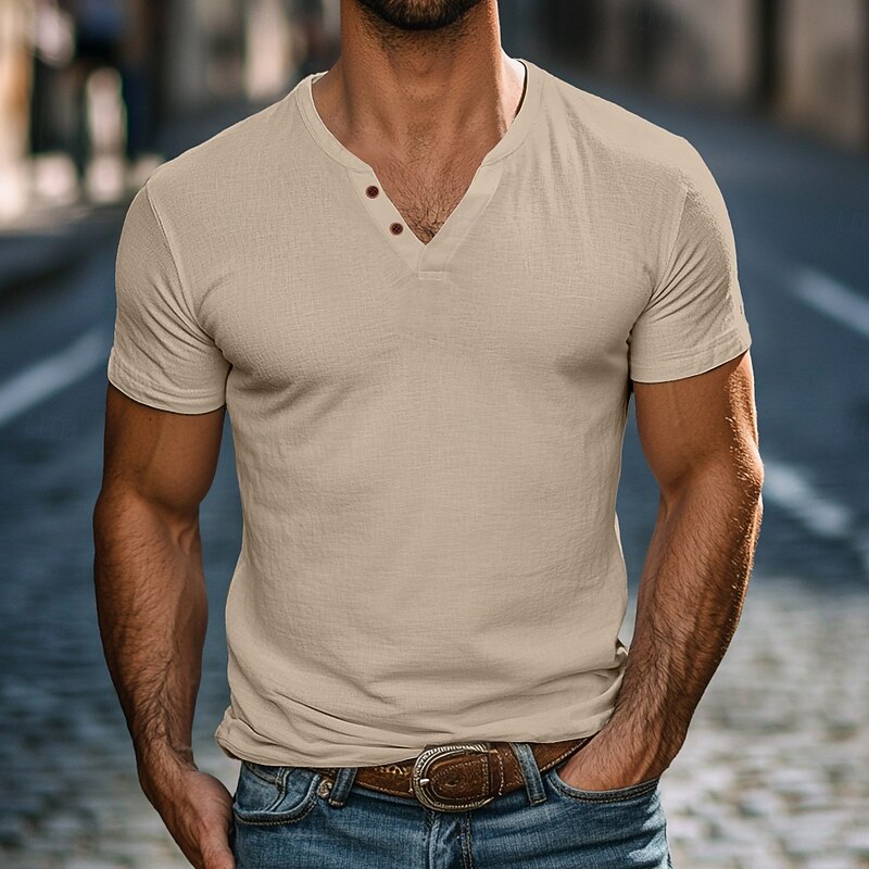 At www.pascuello.pl, we believe in providing our customers with only the best products. This Men's Henley Shirt Tee Top Short Sleeves Plain Fashion Designer Basic Buttons V Neck Henley Vacation Street Casual Summer Black White Navy Blue Henley T-Shirt is designed with attention to detail and high quality craftsmanship that you can see and feel. Whether you're looking for functionality, style, or both, this product delivers exceptional value.