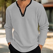 Men's Waffle Henley Shirt Tee Top Long Sleeve Shirt Solid Color V Neck Outdoor Casual Long Sleeve Patchwork Button Clothing Apparel Fashion Designer cushy