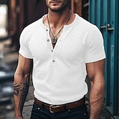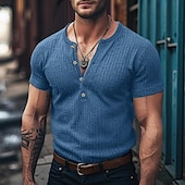More information about Men's Henley Shirt Muscle Shirt Ribbed Knit tee Tee Top Short Sleeves Plain Pit Strip Fashion Designer Basic Henley Vacation Street Going out Summer White Blue Dark Gray Henley T-Shirt