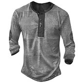 More information about Men's Waffle Tee Button T Shirt T Shirt Waffle Knit Tee Long Sleeve Crew Neck Summer Color Block Fashion Designer Basic Vacation Street Going out Navy Blue Green Khaki Top Tee for Men