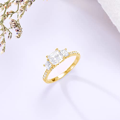 1-1/3 ct.tw. Three-Stone Princess Cut Moissanite Engagement Ring for Women in 925 Sterling Silver/10k Gold/14k Gold/18k Gold, at no charge Personalized Engraving Name Ring