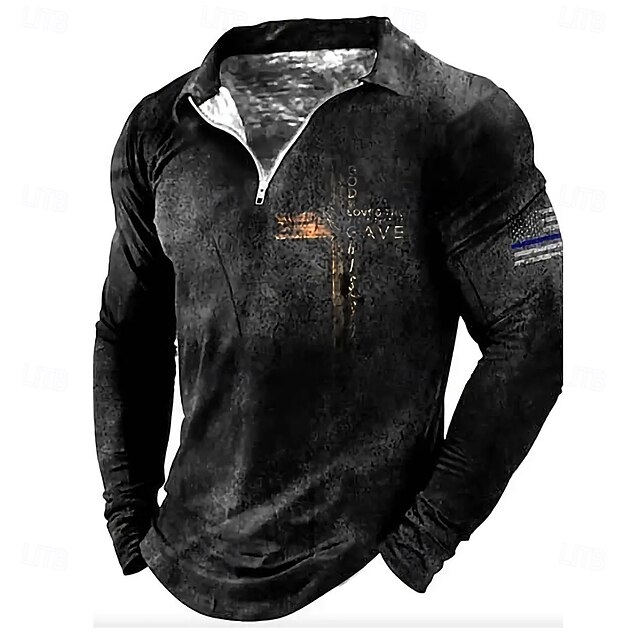 More information about Men's Graphic Cross Polo Long Sleeve Half Zip Vintage Casual Daily Athleisure Casual Daily Zip Up Spring Fall Winter Black Blue Dark Grey