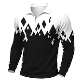 More information about Men's Geometic Polo Long Sleeve Polo Shirts Casual Outdoor Street Daily Wear 3D Print Quarter Zip Polo Spring Fall Winter Black White