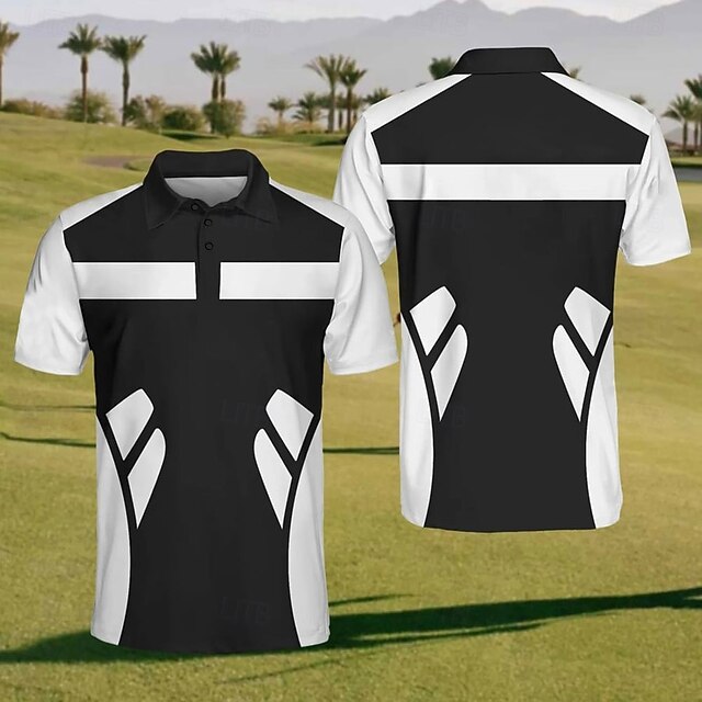 More information about Men's Striped Sports Polo Shirts Golf Shirt Short Sleeve Polo Shirts Collared Shirts Sportswear Vacation Wear Buttons 3D Print Summer Black