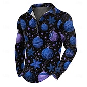 More information about Christmas Men's Bells Zip Polo Shirts Long Sleeve Polo Shirts Lapel Casual Outdoor Holiday Festival Outfit 3D Print Fall Winter Red Blue