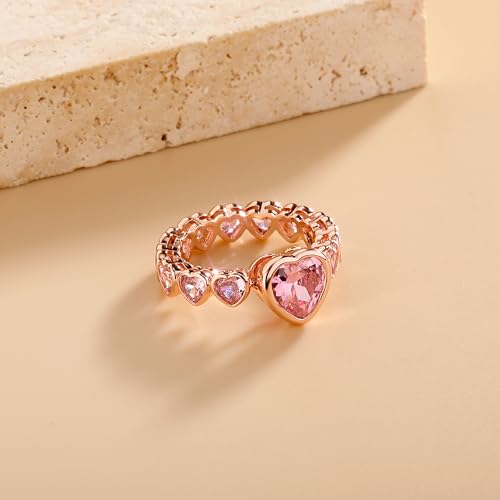TOPGRILLZ Pink Heart Diamond Rings 14K Gold Plated 5A+ Cubic Zirconia Heart Shape Cute Ring Bling Promise Wedding Band appreciate Baguette Rings For Women Trendy