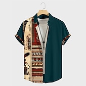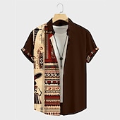 popular ! Men's Tribal Ethnic Bandana Print Shirt Button Up Shirt Short Sleeve Vintage Tribal Outdoor Street Casual Daily Fall Turndown Buttons Print Black Blue Brown