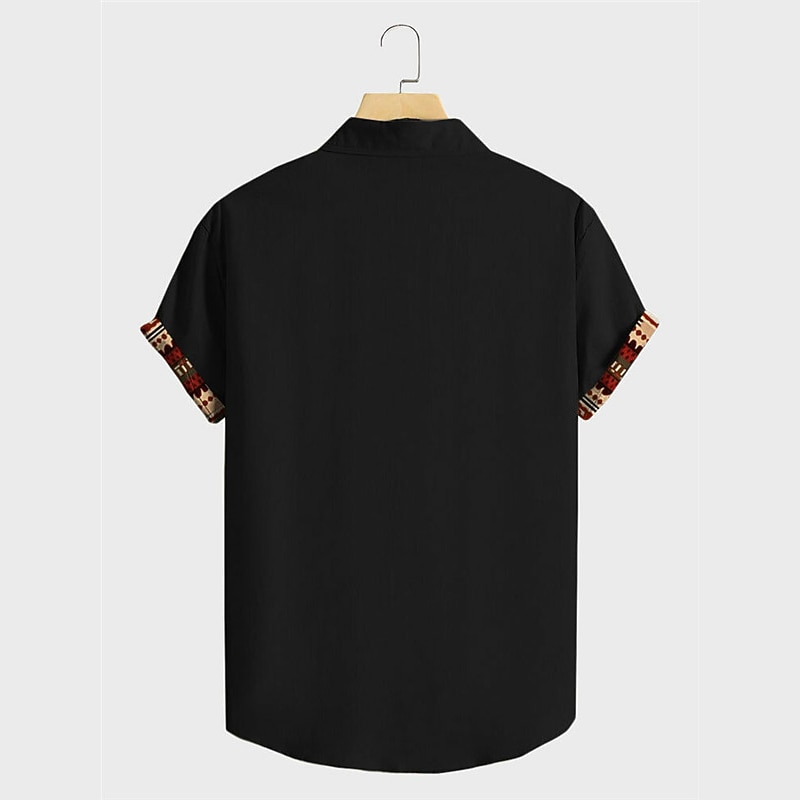 Highlights [Fabric]: Crafted from a high-quality, breathable 4-way stretch fabric, this shirt ensures both comfort and durability. The material's micro-elasticity provides ease of movement, making it suitable for various activities throughout the day. [Fit]: Featuring a relaxed fit, this short-sleeve shirt is designed to offer comfort and style in one package. Its button-down design allows for adjustable wearing options, adding versatility to your wardrobe. [Design Highlights]: This shirt boasts a exclusive and fashionable tribal and ethnic bandana print, blending vintage and modern aesthetics. It features intricate geometric patterns and cultural motifs on one side, while the opposite side is solid black, creating a fashionable contrast. The classic turndown neckline adds a sophisticated touch to the overall design. [Occasions]: Ideal for street, casual daily wear, and outdoor adventures, this shirt is perfect for those looking to make a statement. Whether you're heading out for a relaxed day in the city or a casual outing, it's a stylish choice that complements various occasions. [Size Range]: Available in a wide range of sizes from S to 5XL, ensuring a fit for everyone.